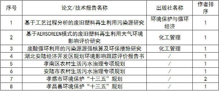 表1 謝芳同志環(huán)境保護(hù)中級職稱任職成果一覽表